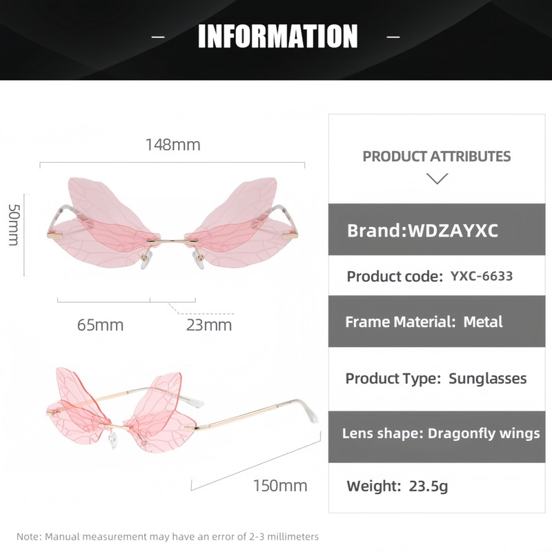 WDZAYXC Dragonfly Sunglasses, Butterfly Sunglasses, Dragonfly Wings Sunglasses for Women and Girls, Colourful, pink