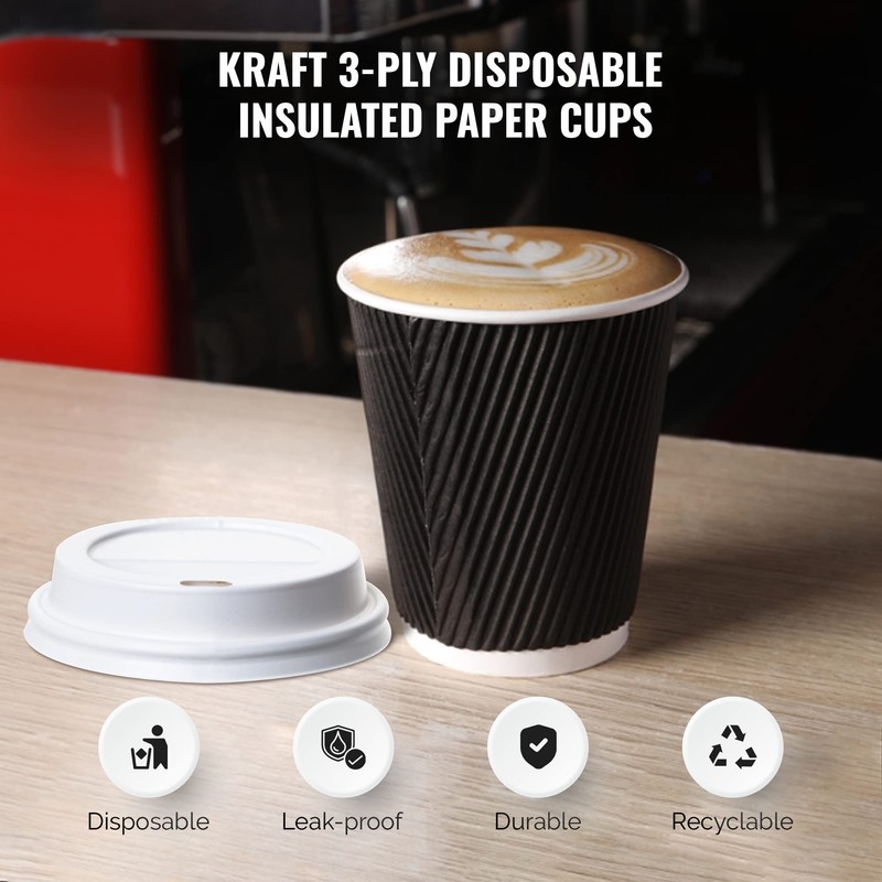 - The 12oz paper cups with lids have a double wall/triple layer construction that helps in maintaining the temperature of your hot drinks.