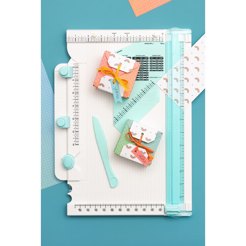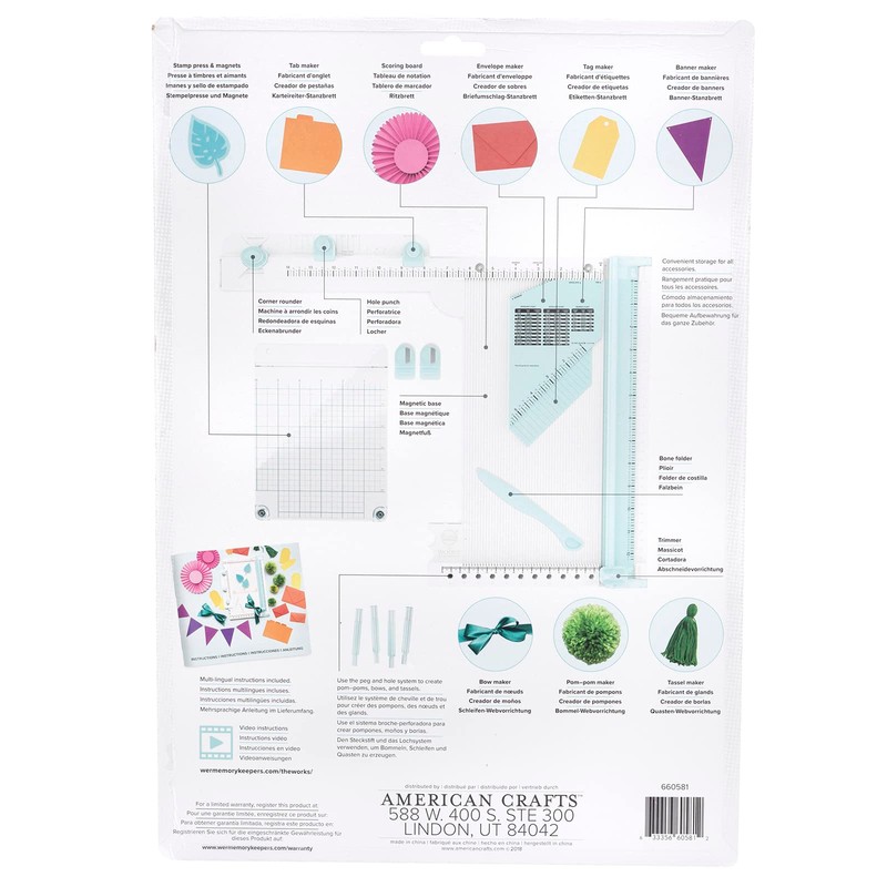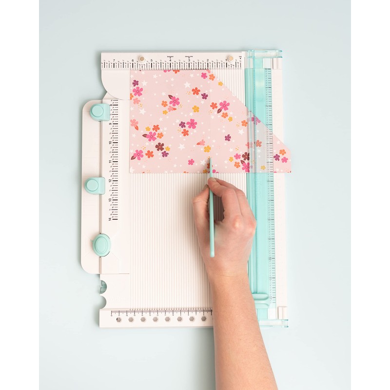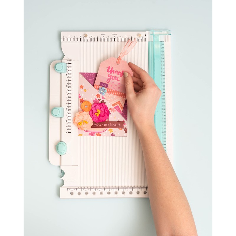 - INCLUDES: Trim and Score Board, Precision Press Advanced, Score Guide, Hole Punch, Corner Rounder, Pom Pom Maker, Bow and Tassel Maker, Bone Folder, Magnetic Base, Magnets, and Posts (12 Piece)
