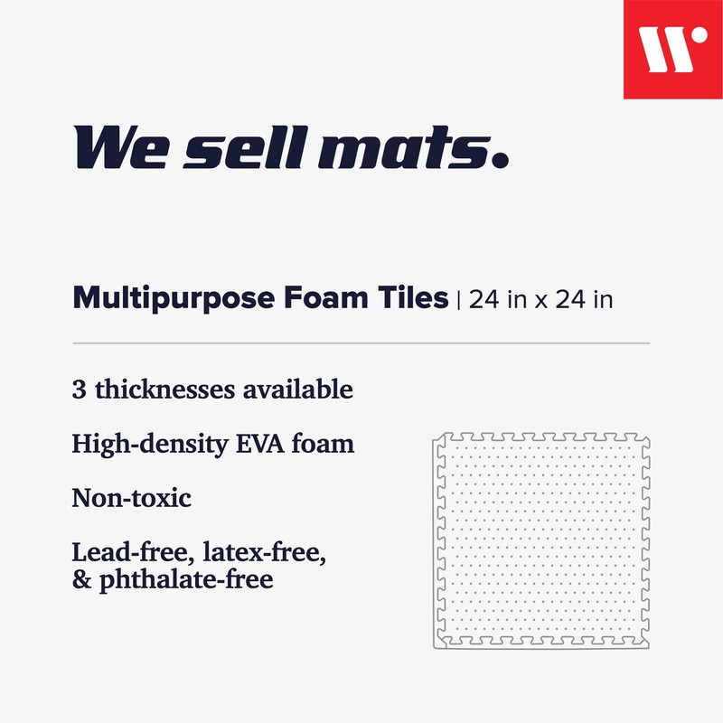 - Durable And Cushioned Flooring - We Sell Mats multipurpose EVA foam floor tiles provide a firm cushion of 1/2 inch thickness to lessen the impact of exercising and playing