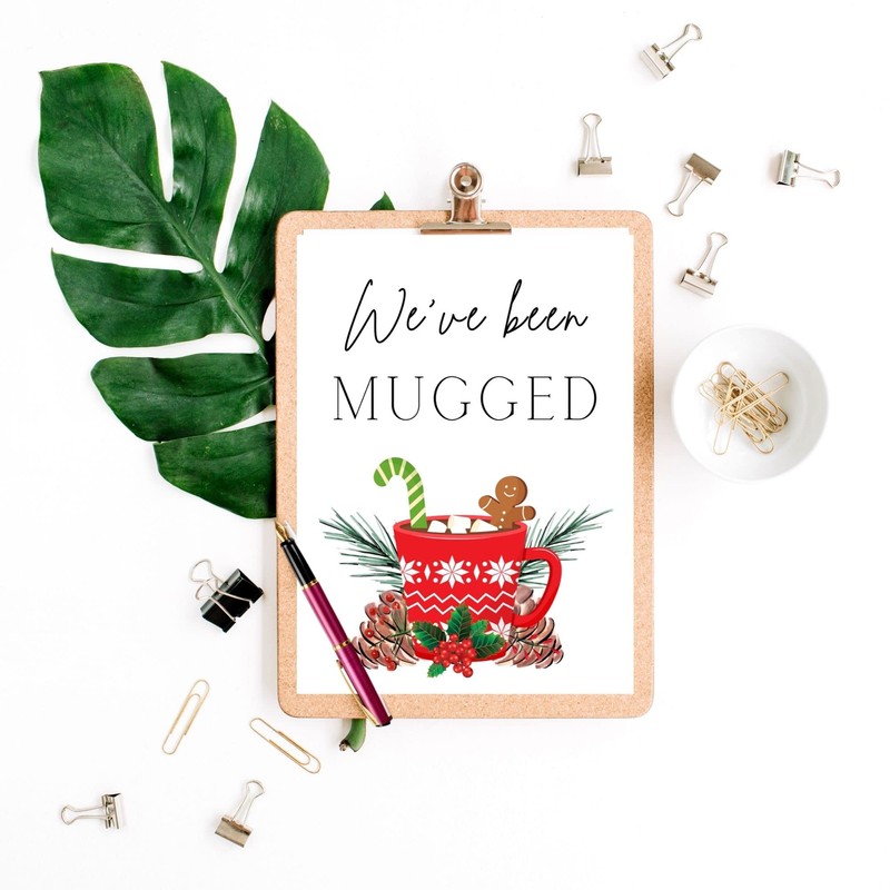 We've Been Mugged | 25 Pack | 8.5x11" inches Standard Paper Size | You've Been Mugged | Hot Cocoa Christmas Design Elfed Booed for Christmas Game