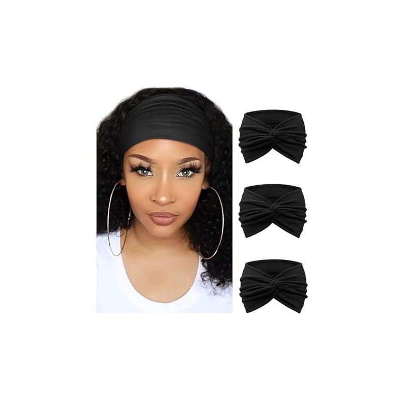 Weardear Damen Stirnband Elastische Stirnbänder Kopfband Kopf Wickeln Haarband Schwarz896 L