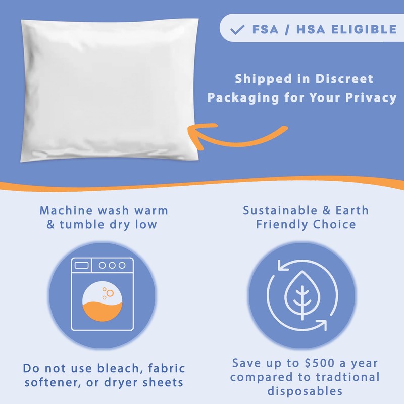 - REUSABLE UP TO 200-250 WASH CYCLES. Pack of one Reusable Brief. 50% Cotton, 50% Polyester Body. 80% Rayon, 20% Polyester Absorbent Pad. Machine washable and dryable. Do not use Fabric Softener, Chlorine Bleach, or Dryer Sheets. Wash before first use.