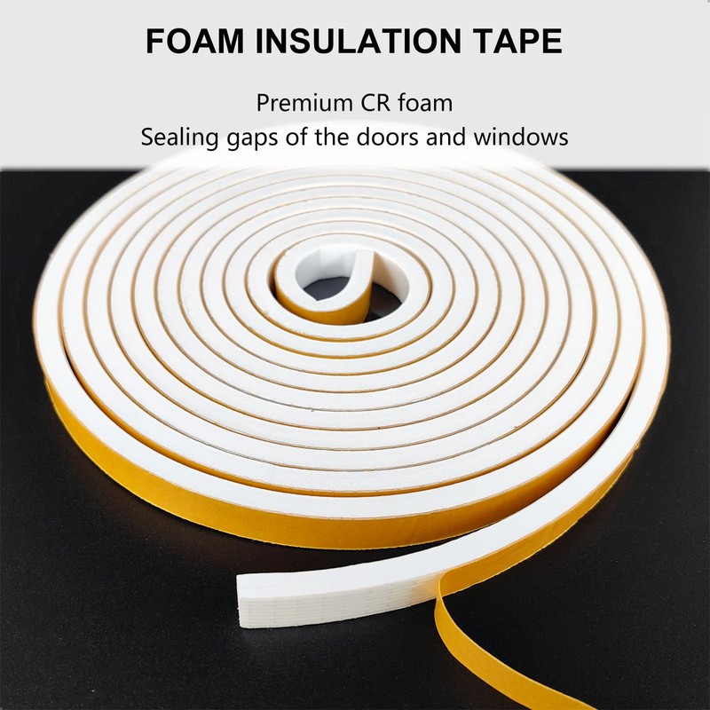 - FOAM INSULATION TAPE - Weather proof, dust proof, sound proof, shock absorbing, buffering, heat insulation. The high density weather stripping is made from CR foam, Neoprene, which has great sealing and resistance to deformation feature.
