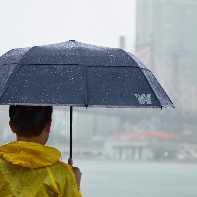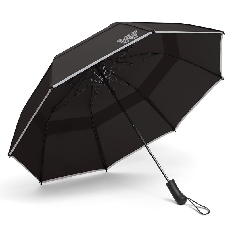 The Weatherman Collapsible is an ingenious spin on the commuter umbrella. Industrial-strength fiberglass defends against breaking and inverting, water-repellent fabric keeps you dry, and vented canopies withstand winds up to 55 mph.