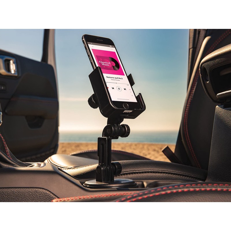 - Fits into any automotive cup holder & supports a wide range of mobile devices. Open access bottom lets you easily charge your mobile device while it is in place.