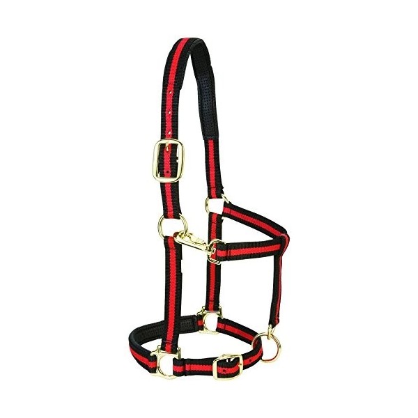 Weaver Leather Durable Adjustable Small Horse Halter Red Black with Brass Hardware 1 Inch Wide