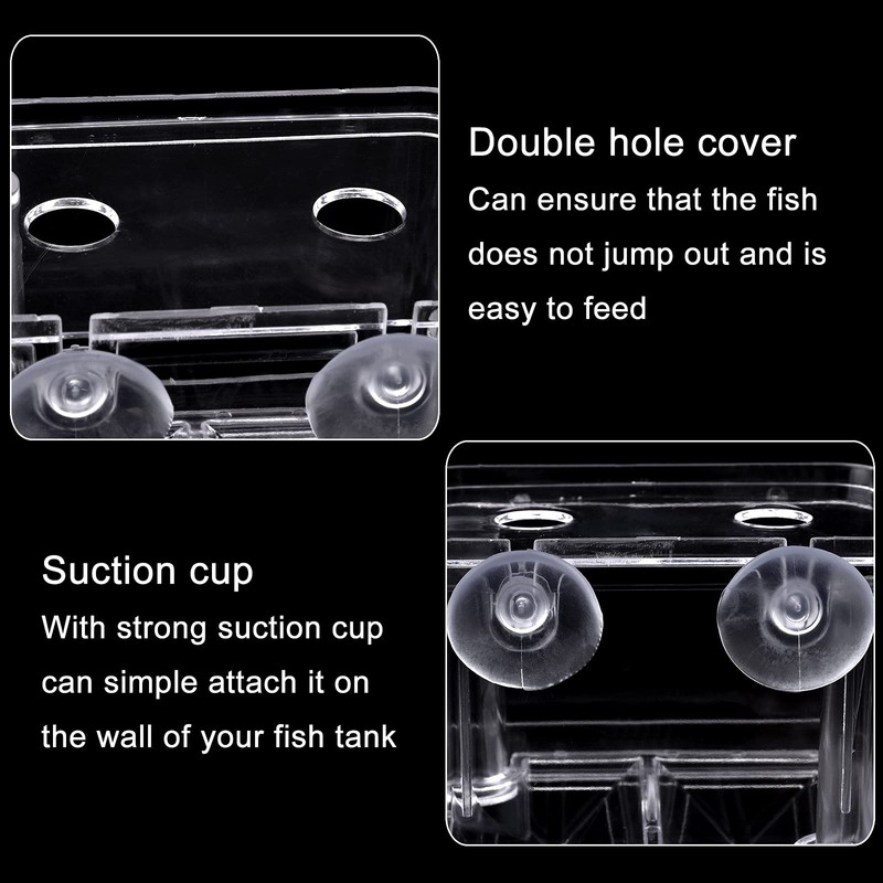 - Easy to Feed: There is no need to open the lid for feeding and there is a feeding hole at the top. with suction cup design, simple attach it on the wall of your fish tank.