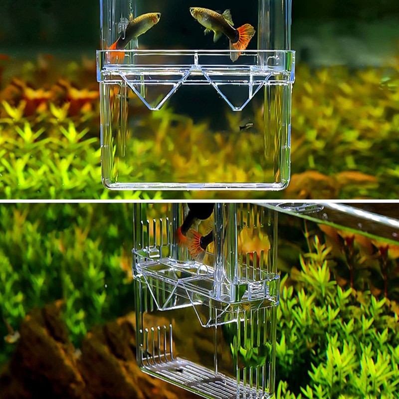 - Self-floating design: 2-layer combination does not occupy space;unique floating and transparent plastic cover designed to prevent the fish out of the isolation room to protect the newborn fish.
