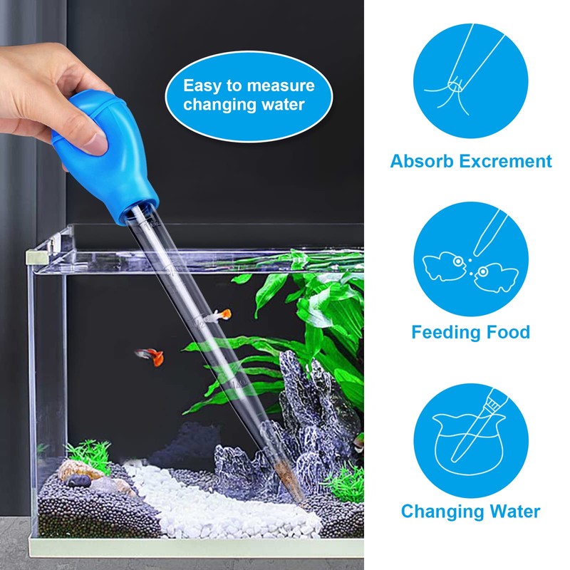 - Keep fish tank clean: The aquarium gravel cleaning straw can remove the dirt and residual feed at the bottom of fish tank. It is perfect for stirring up waste and sucking it up without stressing the fish out too much. Help to keep your fish tank clean.