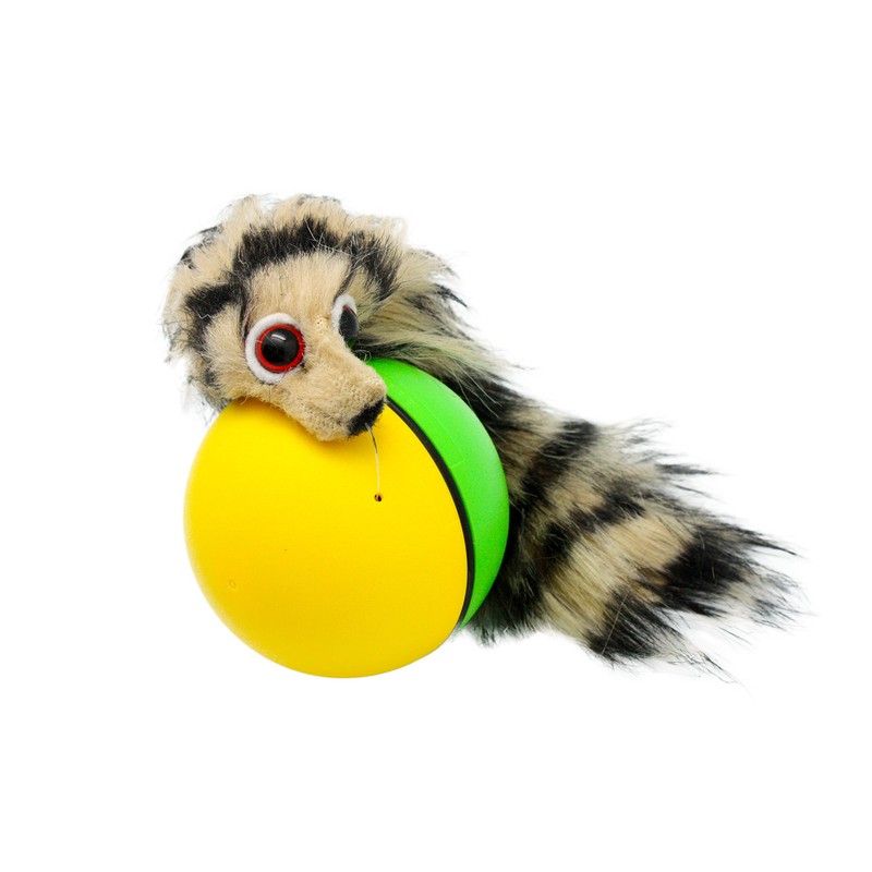 - Motorized plastic ball rolls around when turned on and Weazel frantically chases the ball