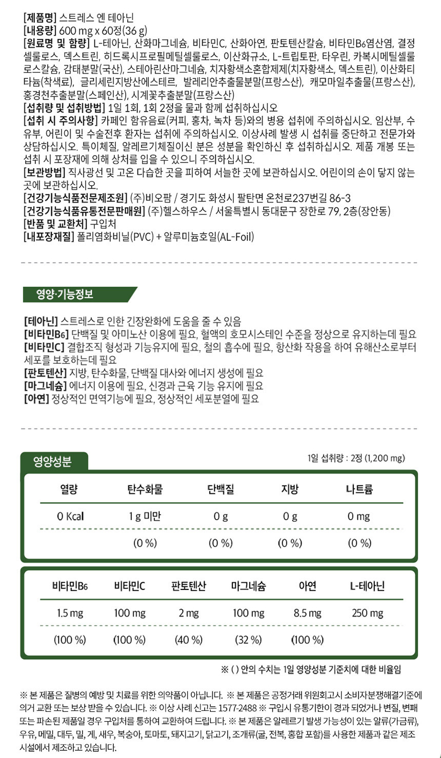 - 「건강기능식품에 관한 법률」에 따른 유전자변형건강기능식품 표시: 유전자변형건강기능식품여부:대상아님