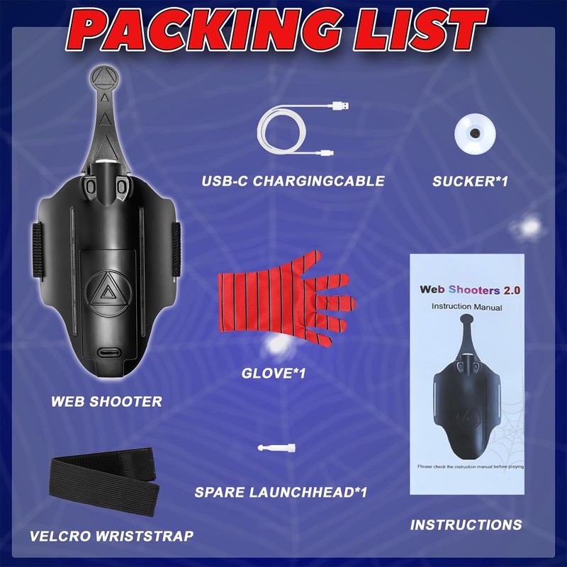 - The Ultimate Gift for Every Young Superhero - Looking for the perfect gift that will make your child feel like a real-life superhero? The 2.0 Spider Web Shooter is the ultimate role-play accessory—perfect for birthdays, Christmas, Halloween, or just because! Watch your little one’s imagination take flight as they become their favorite superhero, swinging into action with realistic web-launching excitement.
