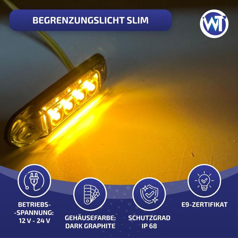 Web Truck Slim Marker Light, Marker Light, Dark Graphite, Orange, 12/24 V, Position Light, Thin, 2 Pieces, Car, Bus, Truck, Car, ATV, Caravan, Trailer