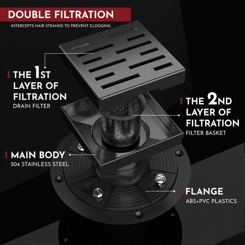 - 【Effortless Maintenance for a Hassle-Free Experience】 The WEBANG Shower Drain features a detachable strainer basket for simple debris removal and a lifting hook for easy access to internal components, ensuring effortless maintenance and keeping your drain clog-free.
