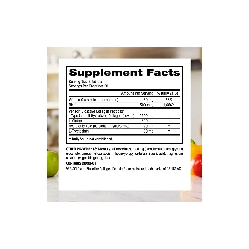 Webber Naturals Collagen30 with Hyaluronic Acid, Bioactive Collagen Peptides, 180 Tablets, Helps Reduce Eye Wrinkles and Fine Facial Line, Non GMO