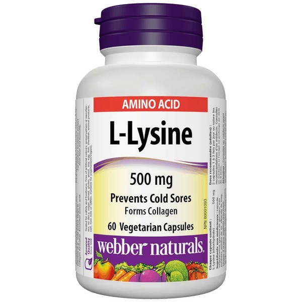 L-Lysine from Webber Naturals is one of the best-known nutritional supplements for treating cold sores caused by the Herpes simplex virus. L-Lysine is one of nine essential amino acids needed by the body to manufacture proteins. It is called "essential" because the body cannot manufacture it.