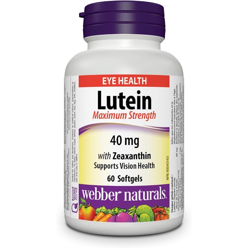Webber Naturals Lutein 40 mg with Zeaxanthin, Maximum Strength, 60 Softgels, Supports Eye Health