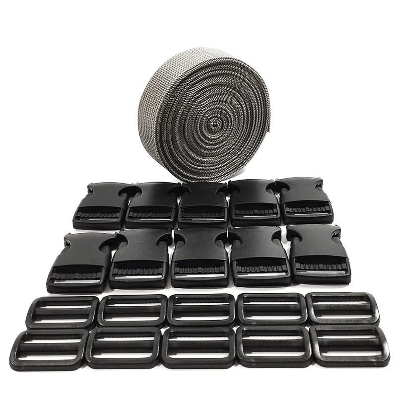 Webbing PP 5 m x 20 mm Width + 20 Buckle, Backpack Strap for Sewing and Crafts, Luggage Strap, Polypropylene Webbing, Grey Strap, (20 mm x 5 m, 317)