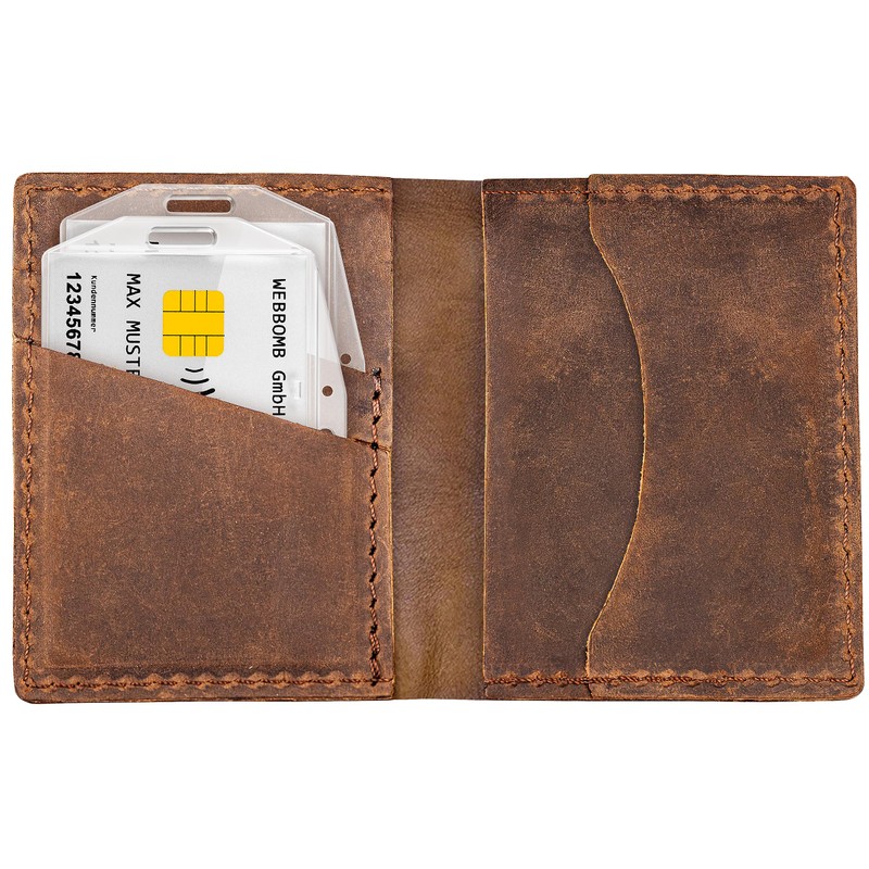 - Alignment of the card: both are possible: horizontal and vertical (dual use! = you use the card holder around as you need it). Dimensions of the card case outside approx. 96 x 63 mm suitable for up to 2 cards (inner dimensions 86 x 54 mm = credit card size)