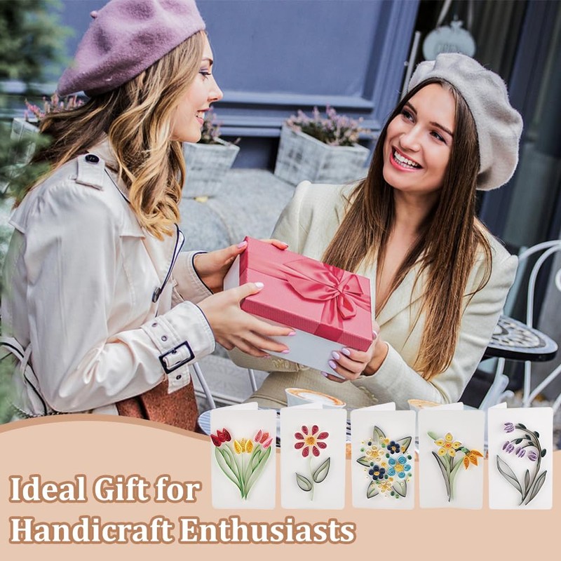 WEBEEDY 20 Sets Paper Quilling Kit for Adults Beginners DIY Bouquet Quilling Greeting Card Making Kit with Instruction DIY Unique Bouquet Card for All Occasions Birthday,Holiday,New Year,Thanksgiving