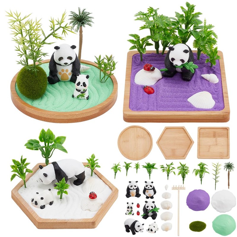 • Complete Zen experience: Includes all the accessories you need to get started,bamboo tray,colored sand,rocks,adorable simulated panda,a variety of decorations and simulated plants to create a vibrant beach landscape.