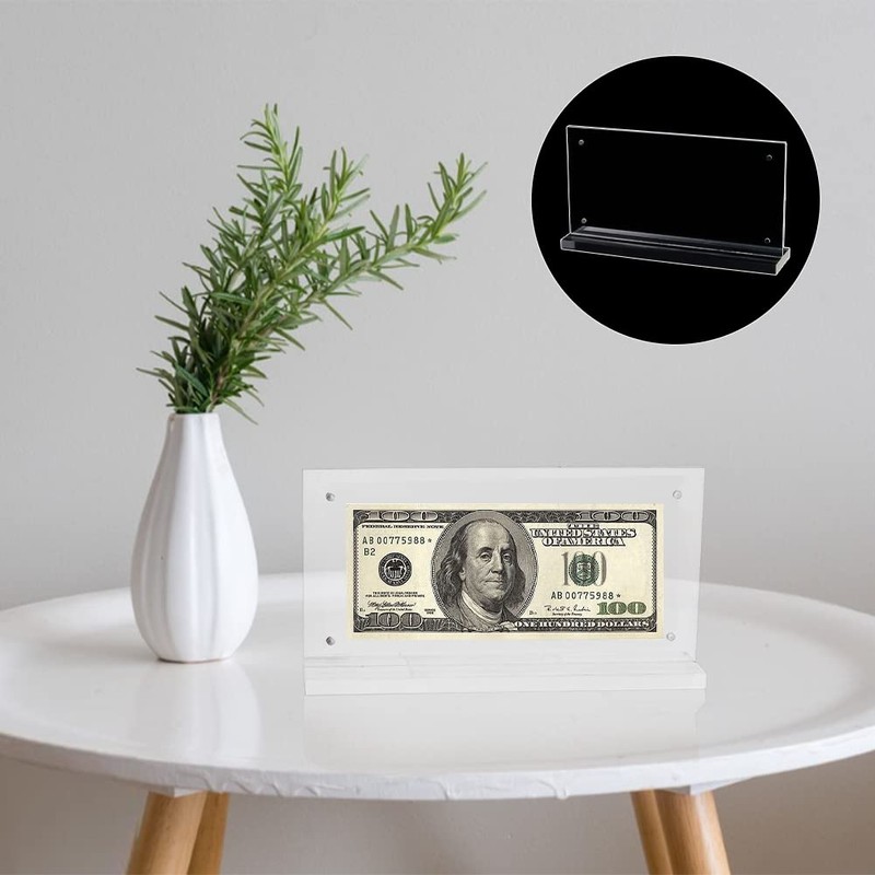 - About the size: the display size of the acrylic dollar bill is approx. 20 x 10 cm. This size is suitable for storing paper m1y, coins or business cards