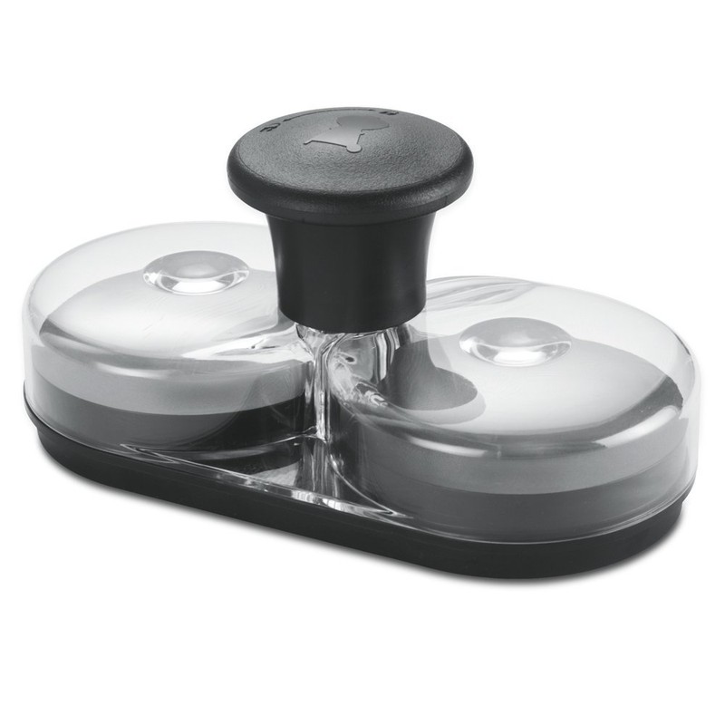 - The press presses a recess into the patties and thus ensures an even shape and a perfect grill result.