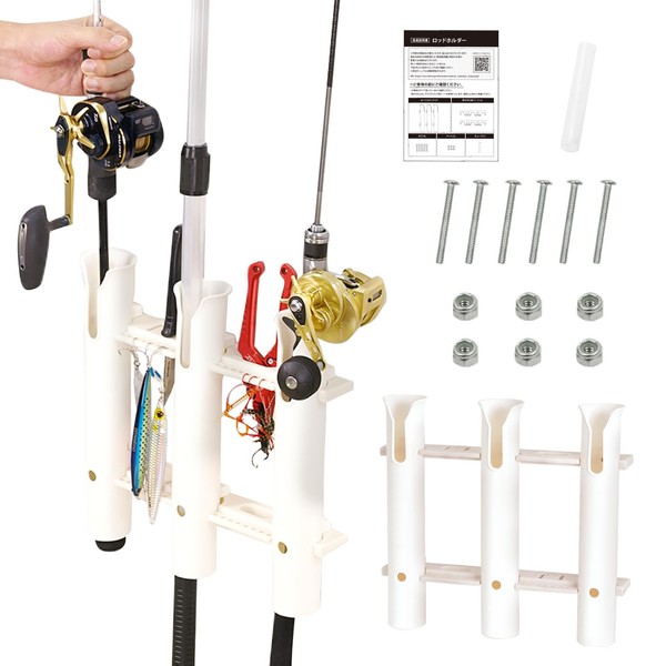 WeBirth Rod Holder, Boat, Japanese Instruction Manual (English Language Not Guaranteed) Includes Installation Tool, Rust Resistant, Anti-Loose, Includes Mold for Puncture Holes (3 Row White, 1 Piece Set)