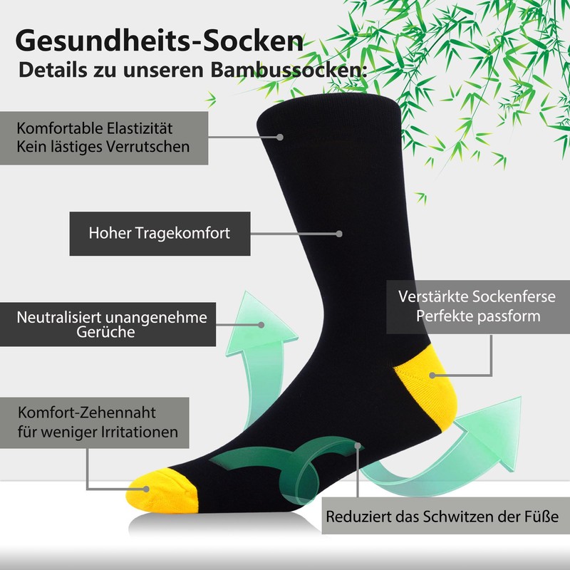 - Breathable against sweaty feet: high-quality bamboo fibres provide excellent wick protection (60% better than cotton alone), natural ventilation, moisture absorption due to the fibre structure at the micro level. This helps the feet stay dry. Bamboo is a natural fiber, non-irritating, odor resistant and ideal for skin