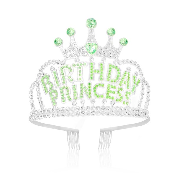 Wecoe Birthday Princess Crown with Combs Birthday Green Rhinestone Tiara Headband Happy Birthday Party Favors Decorations 16th 18th 21st 25th Birthday Gifts for Her