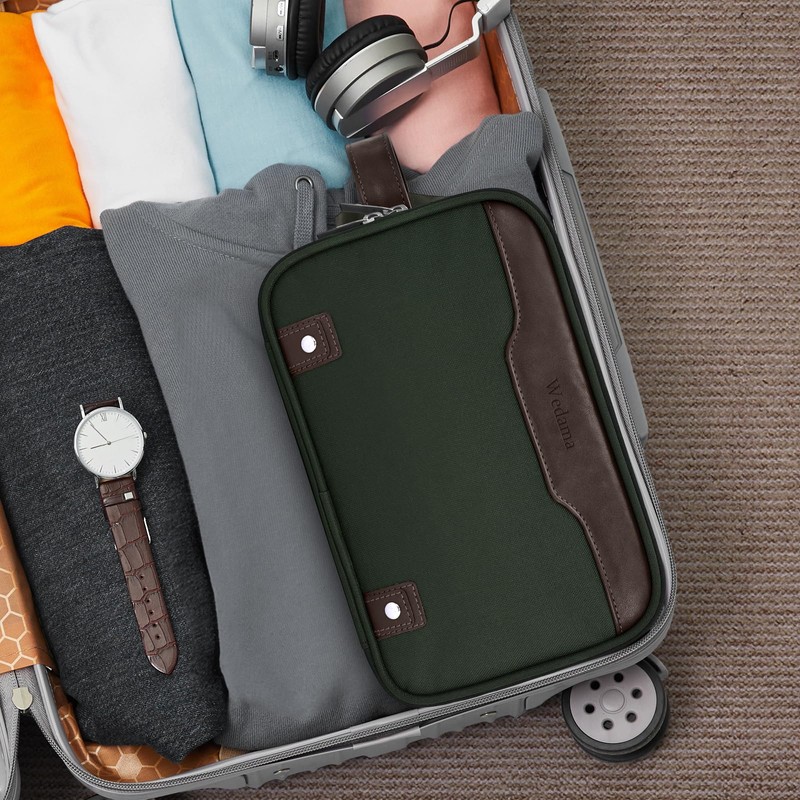 - Travel Essentials: This portable travel toiletry bag is perfect for business trips, travel, gym, camping, and family outings. The design of Wedama toiletry bag is joined PU leather and embellished with metal elements, which makes it classic and stylish. Great gift choice for friends, boyfriends, and family for various occasions like birthdays, Father's Day, Christmas Day, and Valentine's Day.