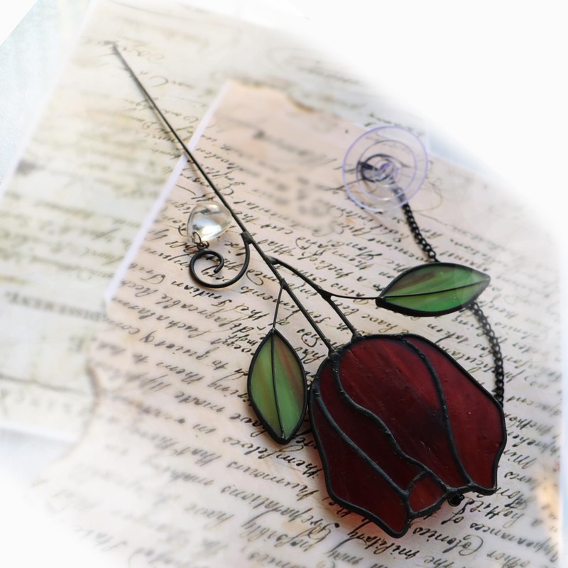 WeDcpcin Stained Glass Flower Window Hanging Rose Sun Catcher Home Decoration Gift for Mothers, Wives, Girlfriends, or Close Friends (Red, Green)