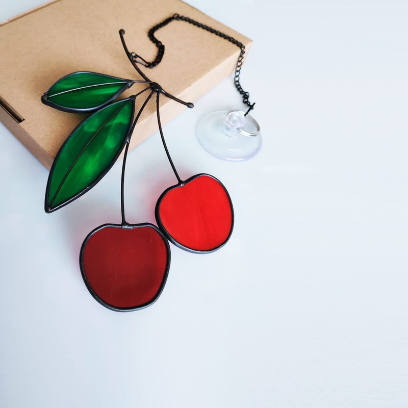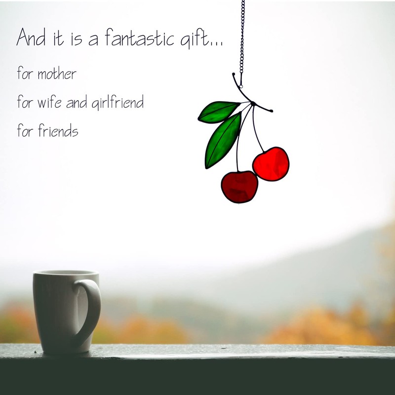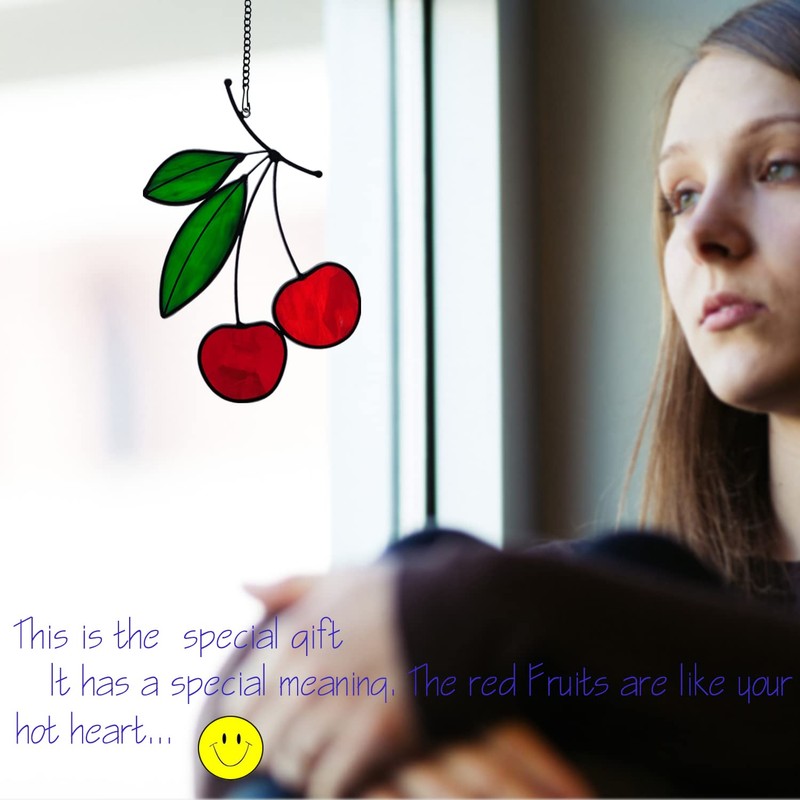 - This red cherry window hanging made of stained glass can be used as a beautiful ornament to decorate the room and garden,or you can give it to friends and family as a gift