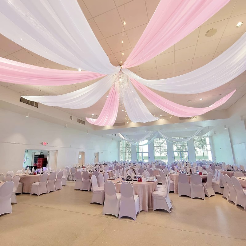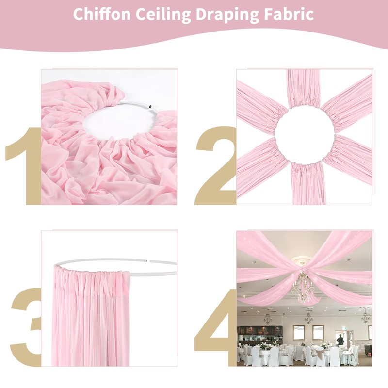 Wedding Canopy Ceiling Drapes 6 Panels 5ftx15ft Pink Draping Fabric Sheer Curtains Voile Ceiling Chandeliers Draping Decorations for Party
