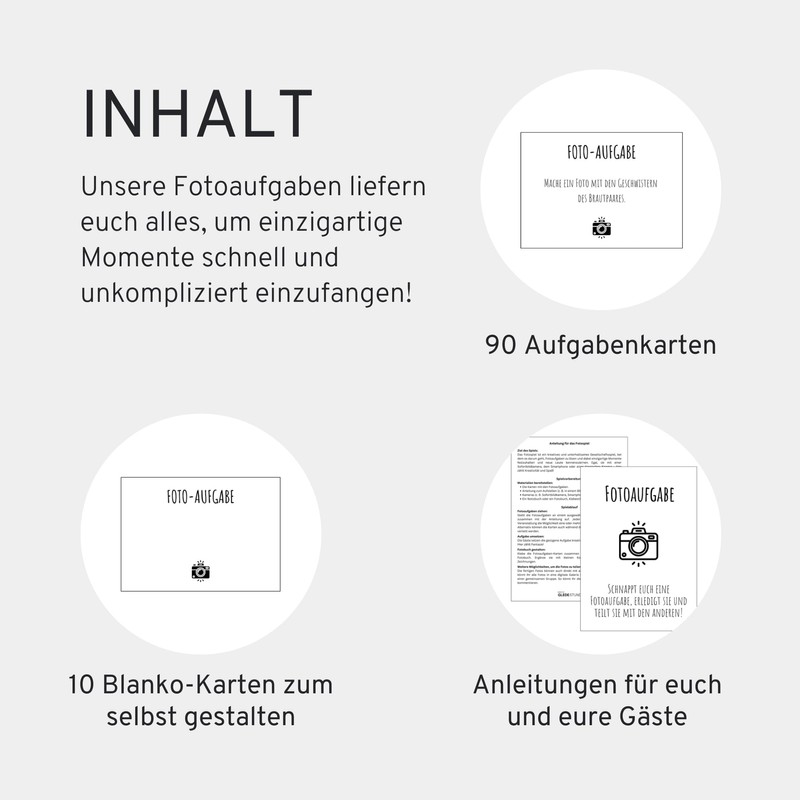 Whether as a special gift idea for the bride and groom or as a surprise for your guests - this photo game impresses with its creative ideas and guarantees lasting memories for everyone.