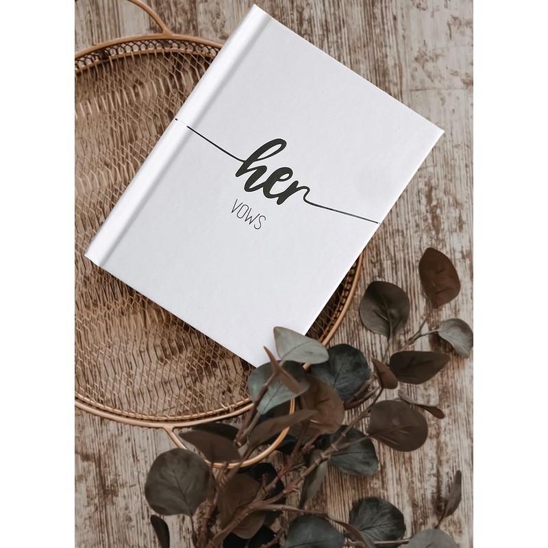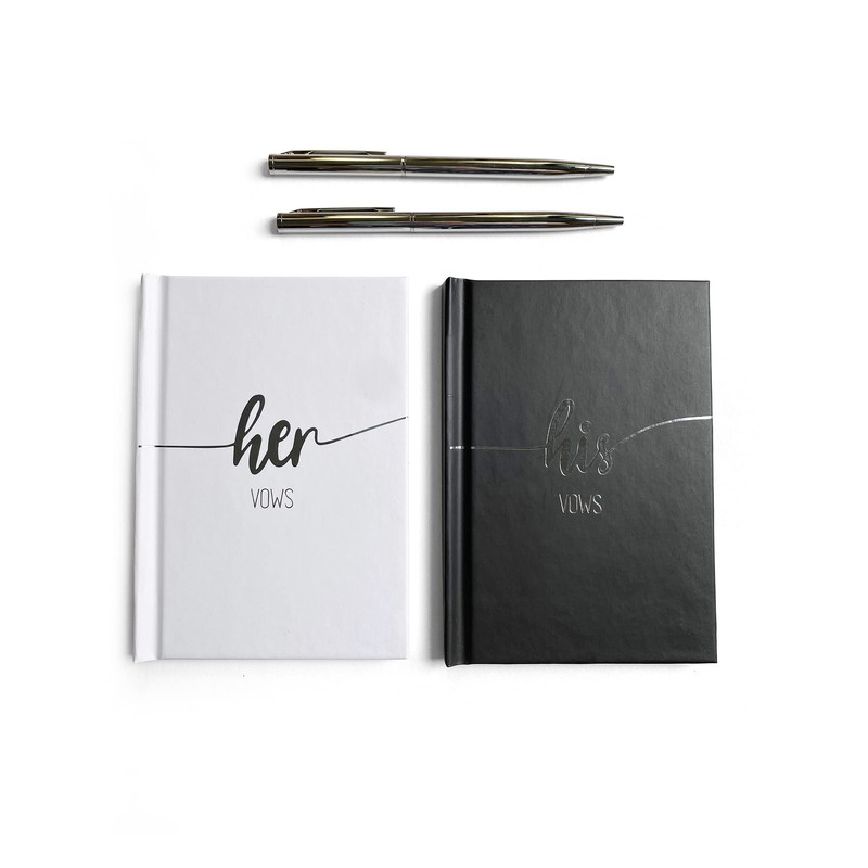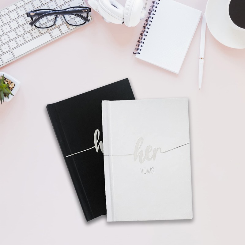 - [SET INCLUDES] Our His Her Vows Book sets have everything you need for your Wedding Day Each Vow Books His and Hers set comes with Her Book in White and His Book Black. You will be able to Write your Vows and share them on your Wedding Day