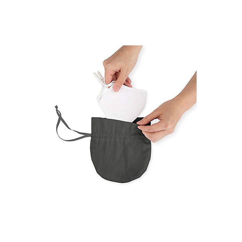 The face mask travel bag is a great way to safely store your mask after use. Designed for when you’re on the move, the grey bag is made from a soft cotton with a satin drawstring to cinch the pouch closed and limit your contact with the mask after its been worn. Plus, you can wash it alongside your mask. It’s a cheap, extra precaution you can take to safeguard against any contaminants the cloth face covering might be exposed to. Especially if circumstances prevent you from throwing your reusable fabric mask directly in the wash.