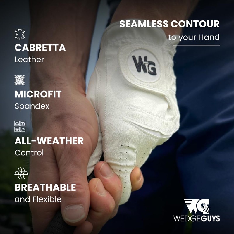 Wedge Guys Flex Premium Cabretta Leather Golf Gloves for Men w/Stretchy & Durable Microfit Spandex Back for Extra Comfort & Superior Grip in All Weather Conditions | Left Hand Mens Golf Gloves 3-Pack