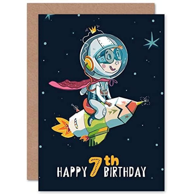 Wee Blue Coo Space Rocket Astronaut Birthday 7th Greetings Card
