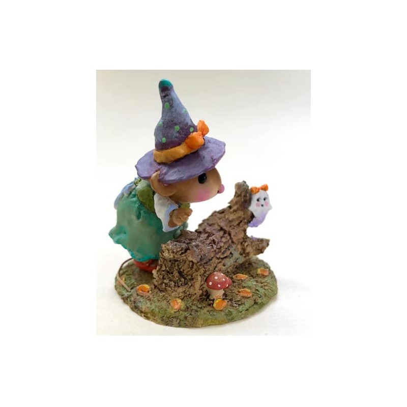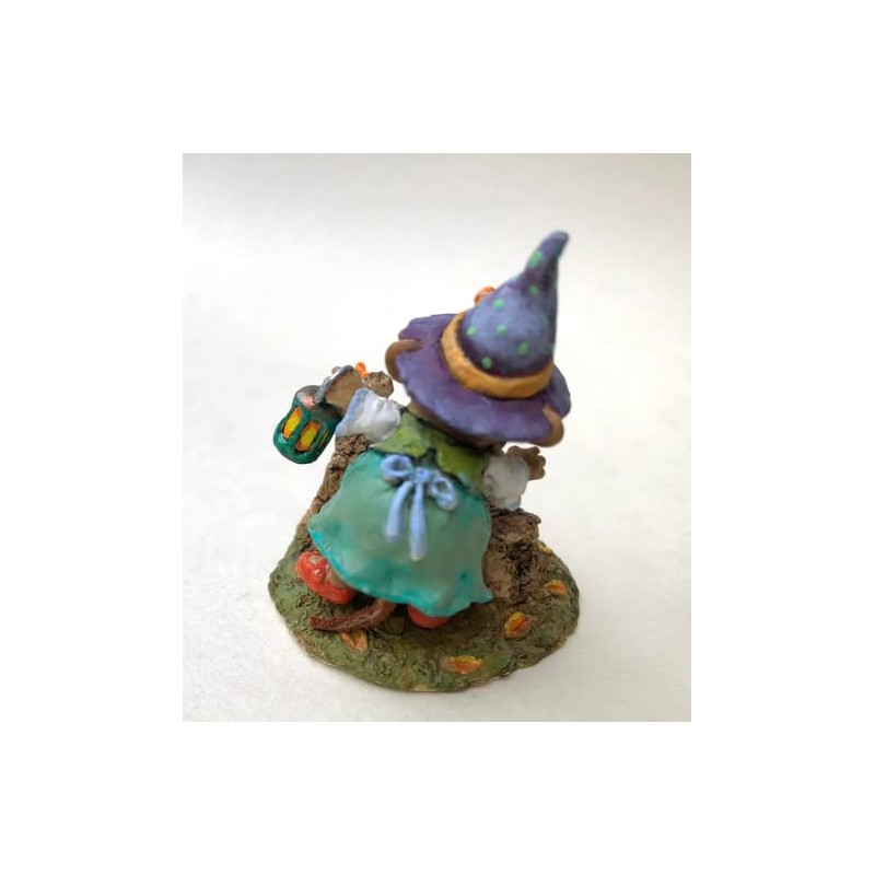 A game of hide and seek is sure to delight this bonny wee witch on a Halloween night. She searches high and searches low, looking for signs of the wee ghostie's glow. 1.75 inches x 1.5 inches. Sculpted by Donna. Wee Forest Folk is a small family business which delights in producing a line of miniatures - most of which are mice. Cast in resin from original sculptures created by the Petersen family, meticulous painting brings each one of these sculptures to life. Made in the USA.