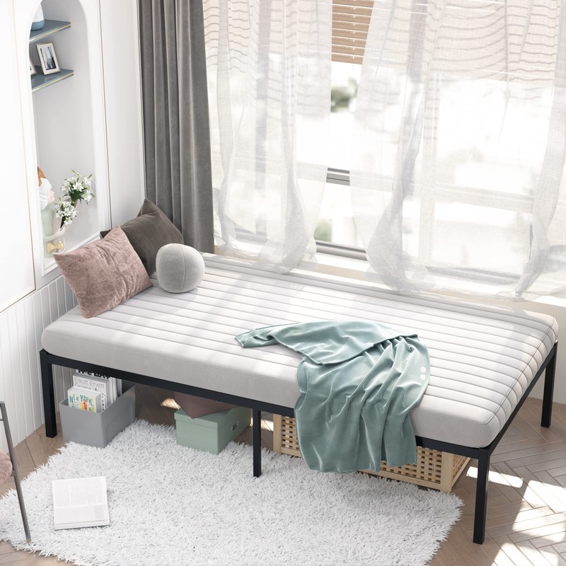 - No Box Spring Needed Metal bed frame twin of reliable steel slats to form a sturdy supportive foundation, add better supports to your mattress without the use of a box spring. This frame simplifies the purchase process to save time in matching spring boxes.