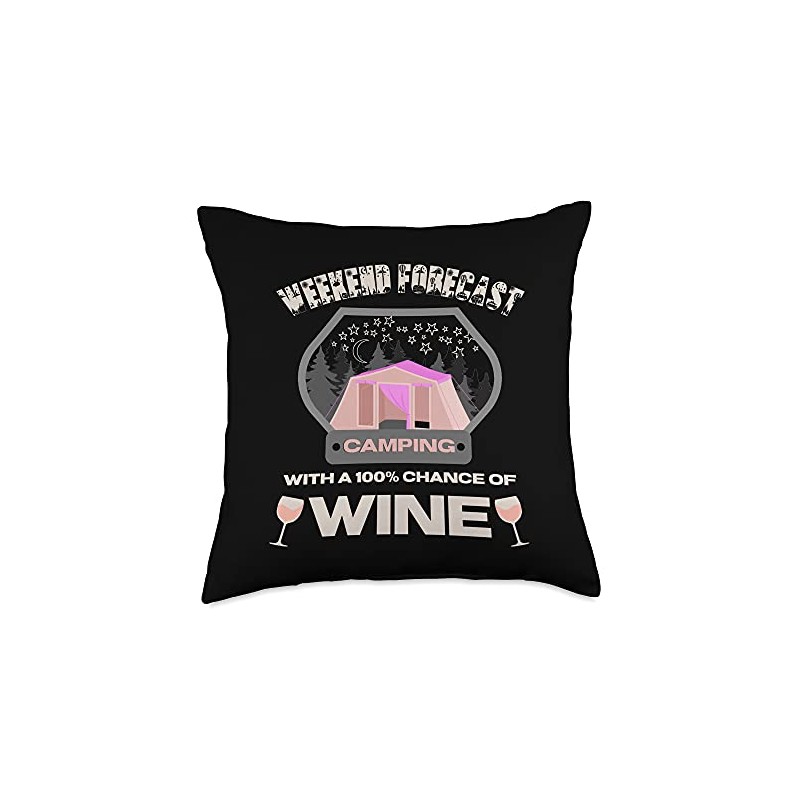 Weekend Forecast Camping With A Chance Wine Lover Pink Tent Throw Pillow