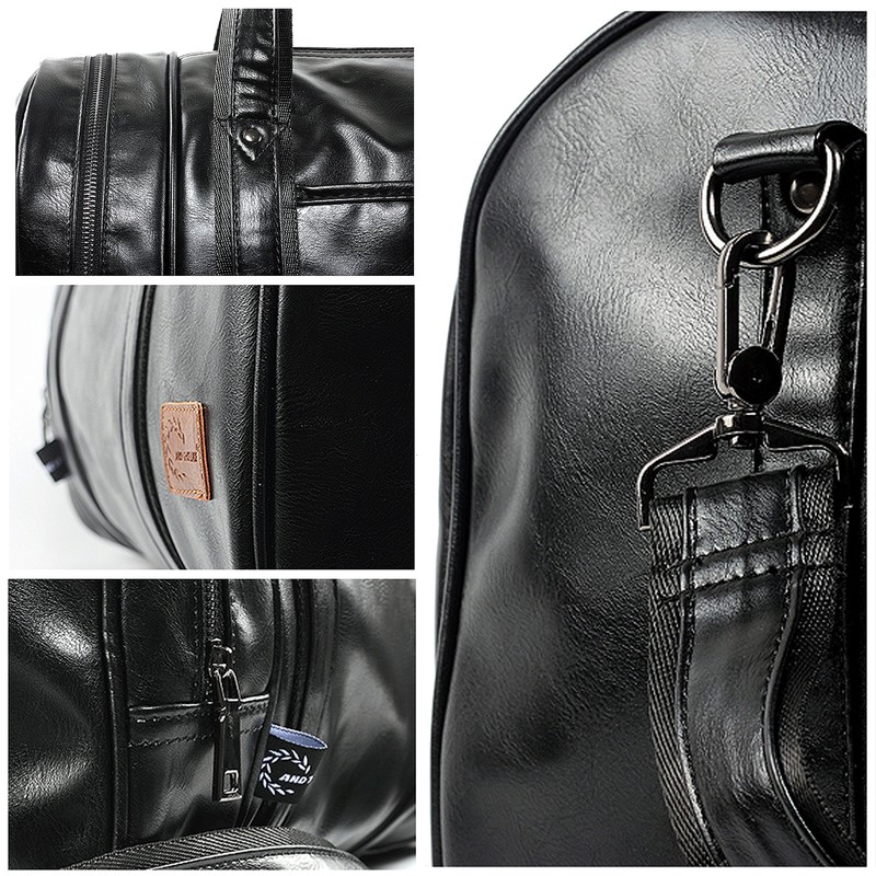 Leather Travel Bag with Shoe Pouch, Waterproof Weekender Overnight Bag, Carry On Duffel Bag for Men Women-Black