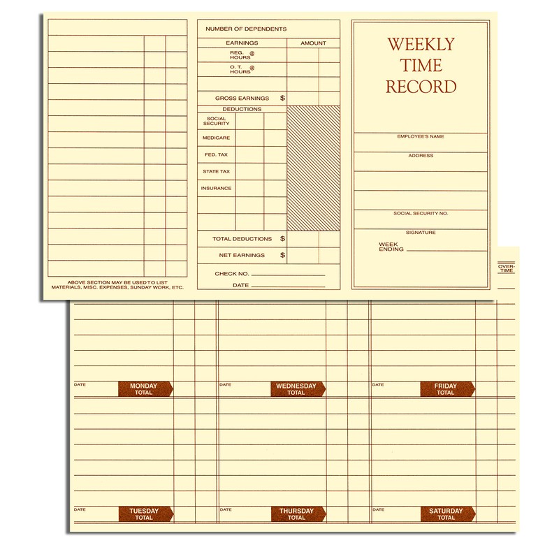 • 8x5" Pocket Size Weekly Time Cards, 100 Cards Per Pack