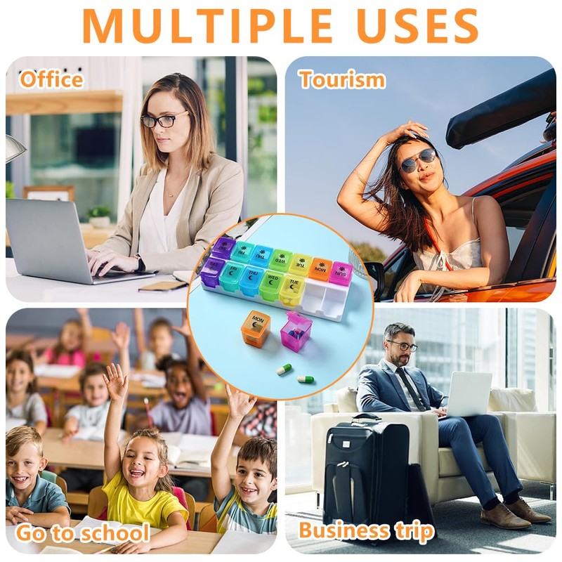 - Suitable for multiple scenarios: daily use at home or office to maintain health routines, mobile applications for trips and outdoor activities, and health management with weekly sorting reminders. The minimalist Nordic style in vibrant colors blends with any decor. Key Features:14-day AM PM pill organizer with time management