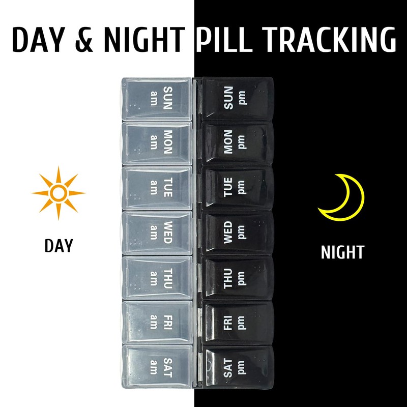 - 【FUNCTION】Designed in two colors, white for the day and black for the night. The pill container helps you quickly distinguish daytime and nighttime meds.