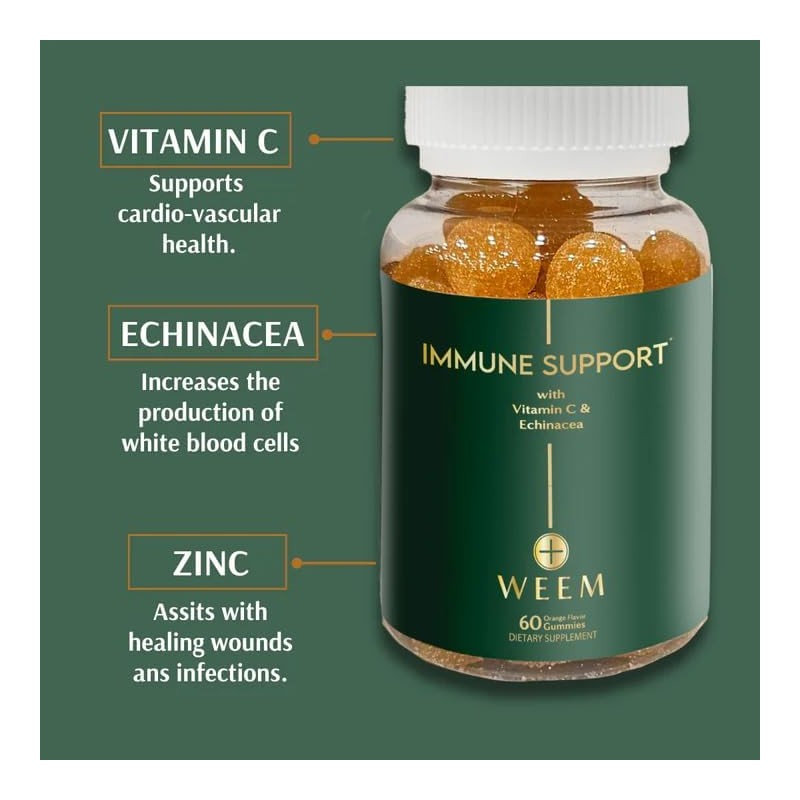 WEEM Immune Support Gummies - Vitamin C - Zinc - Echinacea - Health System Support - Alternative to Pills, Gluten-Free, Natural Supplement for Kids and Adults - 1 Pack