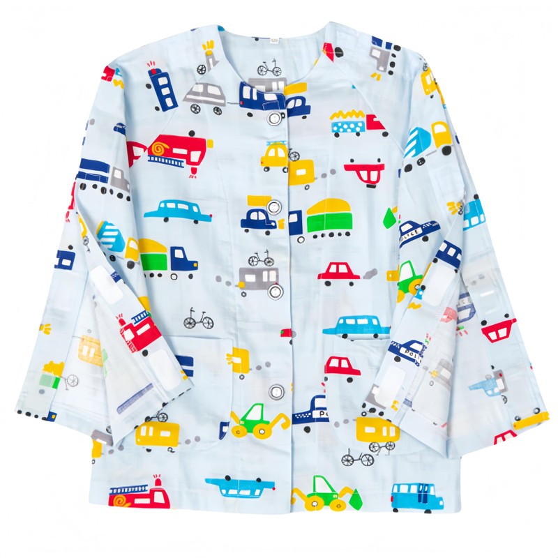 WEEOATAR Broken Arm Clothing Post Surgery Hospital Gowns Incontinence and Bedridden Clothing, Full Open, Easy to Wear with Magic Stickers for Boys and Girls (Car, 130cm/51.2in)