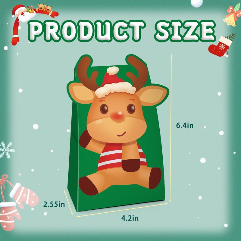 • Compact Dimension: Measuring 4.2 x 2.16 x 7.1 inches, these Christmas treat boxes are just the right size to hold candies, chocolates, cookies, and other small items. Refer to the pictures for detailed size information.
